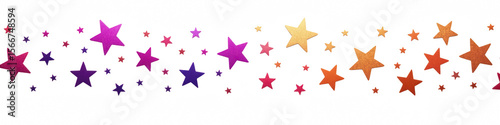 Colorful stars various sizes and shades of purple, orange, and pink scattered against transparency background create whimsical and vibrant