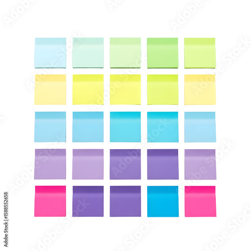 Colorful sticky notes arranged in a grid pattern on a transparent background