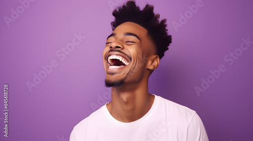 Colorful studio portrait of an attractive young man laughing happily. Bold, vibrant and minimalist. Generative AI
