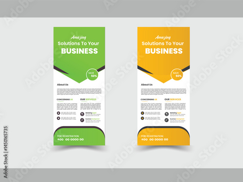 Colorful Stylish Creative Corporate Roll Up Banner Signage Standee Template for Advertising and Multipurpose Use with Four Color Variations.