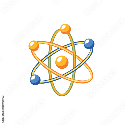 Colorful stylized atom model with orbiting electrons representing science and technology