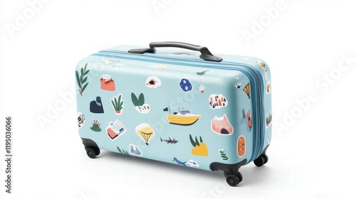 Colorful Suitcase with Travel Stickers on White Background for Adventure