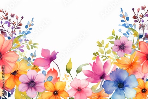 Colorful summer flowers, watercolor background with copy space