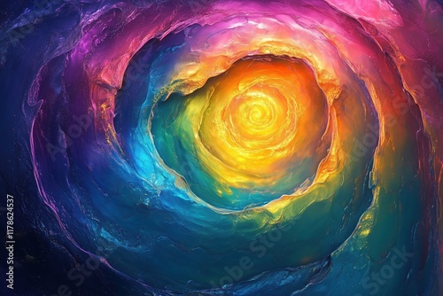 Colorful swirl effects create a vibrant cosmic whirlpool in abstract art