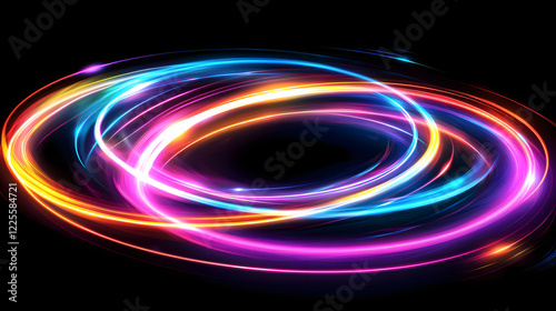 Colorful swirl elements with neon led illumination. Abstract futuristic background.