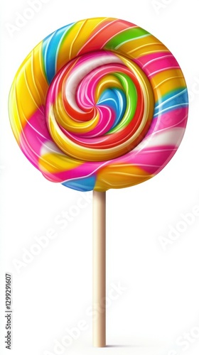 Colorful swirl lollipop on a stick with vibrant hues showcasing a delightful confectionery treat