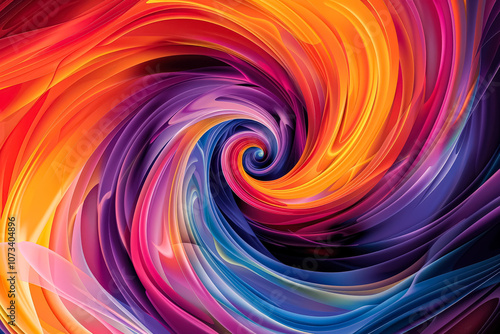 Colorful swirl of colors with a rainbow effect. The colors are bright and vibrant, creating a sense of energy and excitement. The spiral shape of the image adds to the dynamic