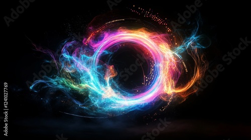 Colorful swirling patterns create a mesmerizing effect in a dark environment