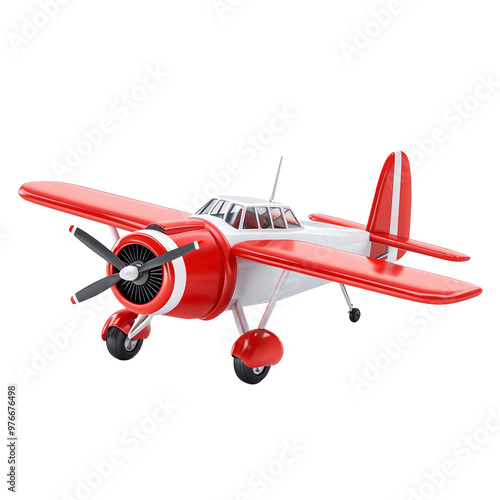 Colorful toy airplane model with red and white design. Concept of aviation and play