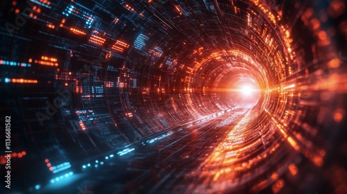Colorful tunnel visualize with bright lights and high tech atmosphere in a digital landscape