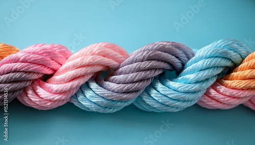 colorful twisted ropes in pastel shades creating a unique and vibrant visual against a blue background