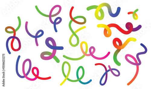 Colorful Twisted Squiggly Lines Isolated on White Background