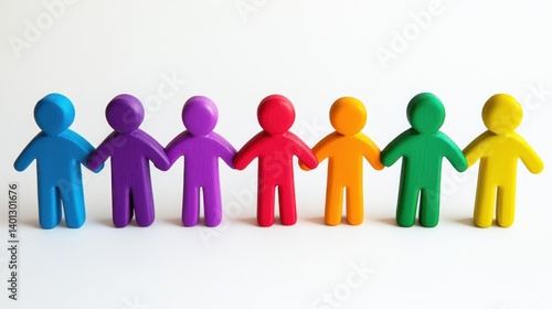 Colorful Unity: A Row of Interconnected Figurines Symbolizing Diversity and Harmony