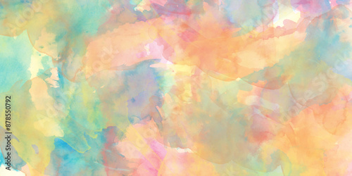 colorful watercolor splash background with grunge multicolor watercolor stains, Watercolor painted gradient colorful background, Pastel ink colors wet effect hand drawn canvas of watercolor with blot.