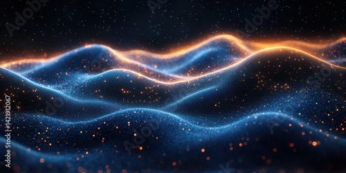 Colorful wave patterns illuminated by shimmering light in a dark space