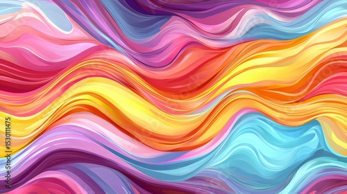 Colorful wave with a blue stripe in the middle. The colors are bright and vibrant, creating a sense of energy and movement. The wave appears to be flowing and dynamic, as if it is in motion