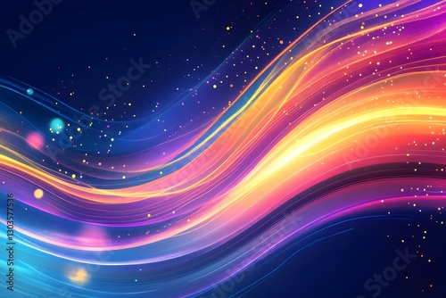 Colorful wave with a lot of sparkles and dots. The colors are bright and vibrant, creating a sense of energy and excitement. The wave appears to be moving, giving the impression of motion
