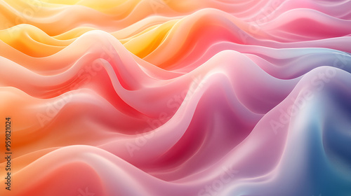 Colorful waves flow across a soft surface, blending shades of orange, pink, and purple, creating an abstract visual effect