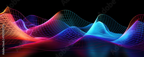 Colorful waves of light form a striking pattern in a digital space highlighting creativity and technology
