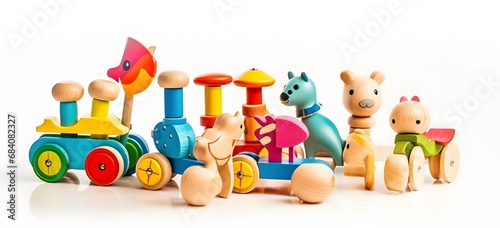 Colorful Wooden Toys Arranged on a Table for Playtime and Learning Activities Generative AI