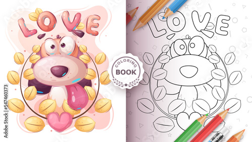 Coloring page cartoon character adorable dog, pretty animal idea for print t-shirt, poster and kids envelope, postcard. Cute hand drawn style puppy.