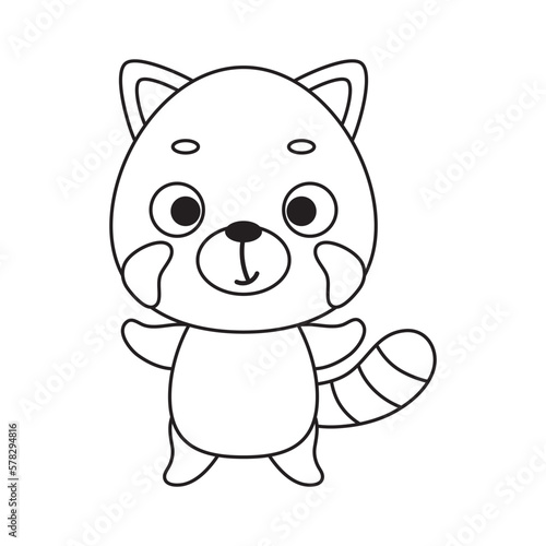 Coloring page cute little red panda. Coloring book for kids. Educational activity for preschool years kids and toddlers with cute animal. Vector stock illustration