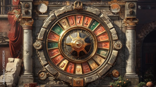 Colosseumthemed circular slot machine with gladiator bonus rounds and ancient design