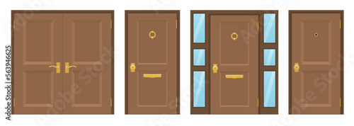 Colour front doors to houses and buildings set in flat design style. vector illustration. Colourful realistic front doors set
