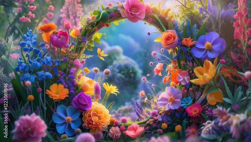 Colourful Flower Frame Design, Capturing Nature's Splendour, Gentle and Delicate Blend of Colours, Tranquil and Charming Atmosphere, Mesmerising and Elegant Floral Composition, Nature-Inspired Artwork