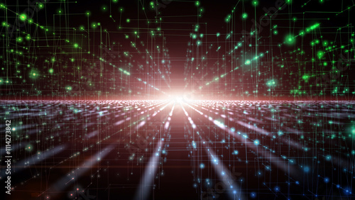 Colourful futuristic cyberspace technology network digital lines on a road traveling in cosmos.