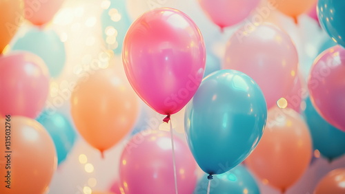Colourful helium filled balloons floating in the air, decoration for parties and celebration, vibrant colour