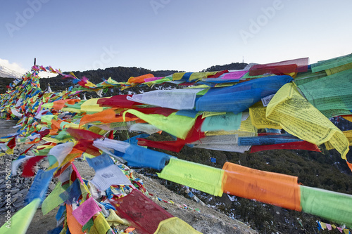 Colourful prayer flags, Shangri-la County, Yunnan, China