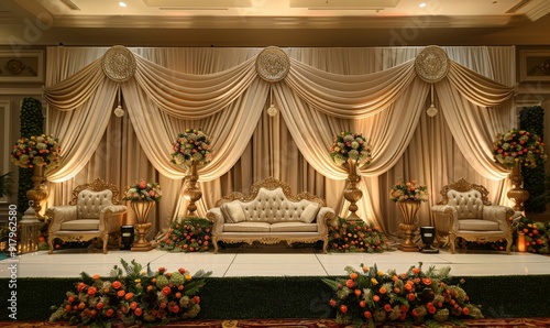 Combination of greenery and pea lights creating a soft and intimate indoor wedding backdrop