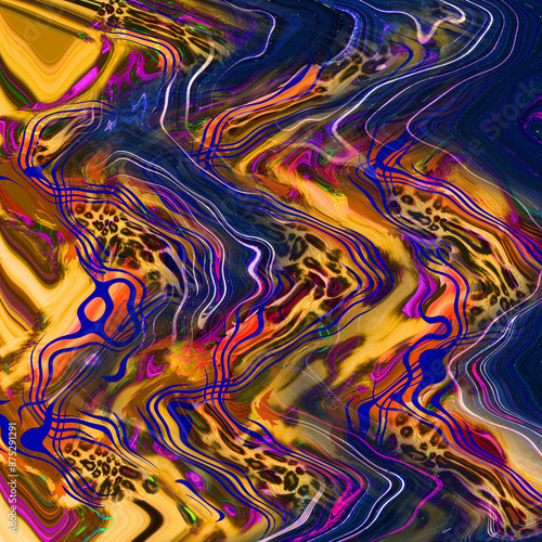 Combination textile collage pattern of wave and lines colored leopard snake tiger textures