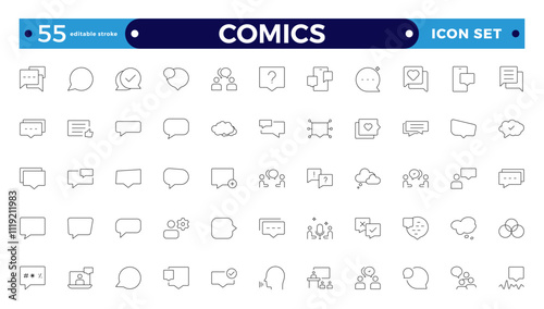 Comics outline icon set. Speech bubble line icon big set. Talk, people, man, user, dialog, chat, cloud etc. Talking, speaking, chatting, screaming, laughing, dreaming bubbles. Editable stroke outline