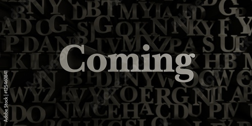 Coming - Stock image of 3D rendered metallic typeset headline illustration. Can be used for an online banner ad or a print postcard.