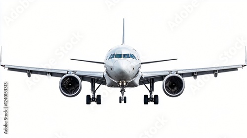 Commercial Airplane Front View Landing Gear Down White Background Air Travel Aviation