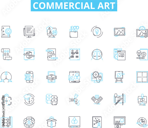 Commercial art linear icons set. Aesthetics, Creativity, Design, Graphics, Imagery, Advertising, Branding line vector and concept signs. Visuals,Typography,Illustration outline illustrations