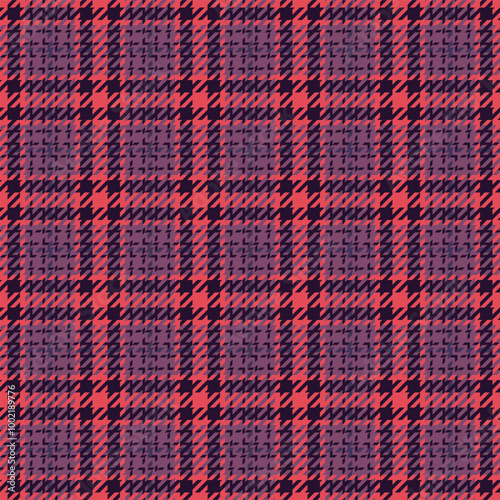 Commercial tartan background fabric, gingham vector seamless textile. Repetition texture check plaid pattern in dark and pink colors.