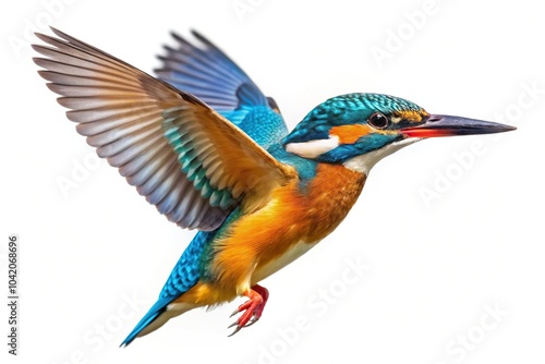 Common flying kingfisher isolated on white background with clipping path focus stacking