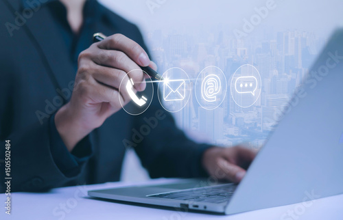 Communications send messages through e-mail messages in computer systems and online internet networks Contact to design a modern business media marketing concept.
