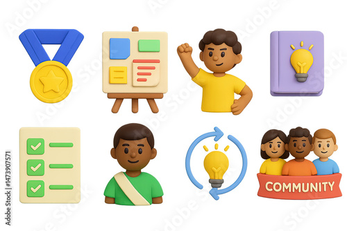 Community engagement icons set – 3d, teamwork, collaboration symbols