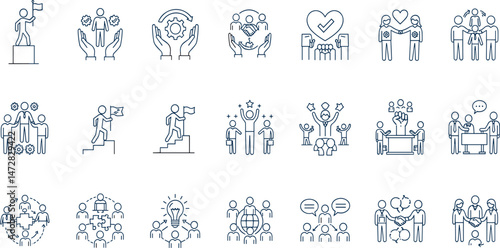 Community icon set. Collection of people, team, partnership, success and more. Vector illustration.