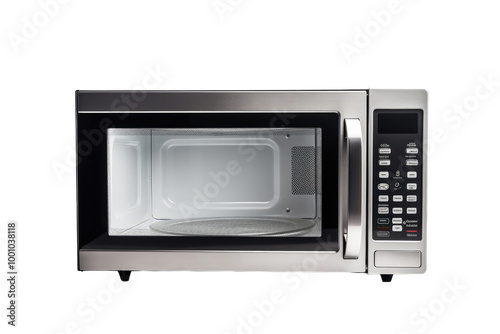 Compact Microwave with a Digital Control Panel and a Glass Turntable Isolated on Transparent Background