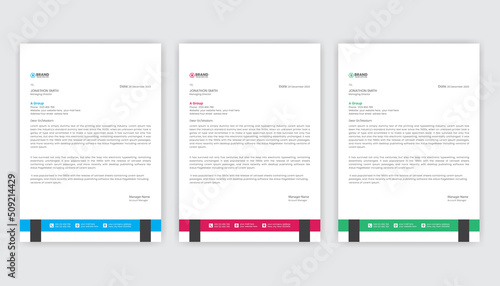Company business clean and professional abstract letterhead design. Multipurpose business letterhead design template with color variation. Minimalist business letterhead design template