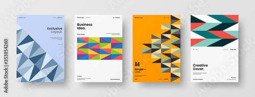 Company identity brochure template collection. Business presentation vector A4 vertical orientation front page mock up set. Corporate report cover abstract geometric illustration design layout bundle.
