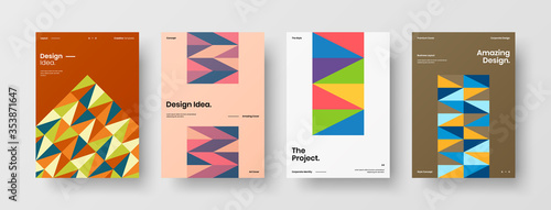 Company identity brochure template collection. Business presentation vector A4 vertical orientation front page mock up set. Corporate report cover abstract geometric illustration design layout bundle.