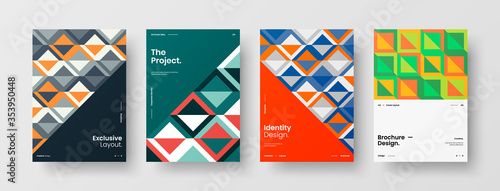 Company identity brochure template collection. Business presentation vector A4 vertical orientation front page mock up set. Corporate report cover abstract geometric illustration design layout bundle.