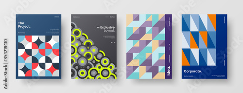 Company identity brochure template collection. Business presentation vector A4 vertical orientation front page mock up set. Corporate report cover abstract geometric illustration design layout bundle.