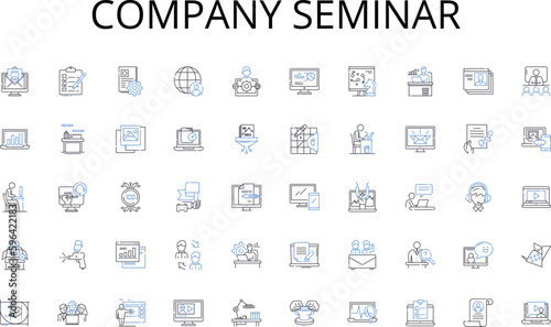 Company seminar line icons collection. Collaboration, Synergy, Partnership, Unity, Synchronicity, Harmonization, Cooperation vector and linear illustration. Generative AI